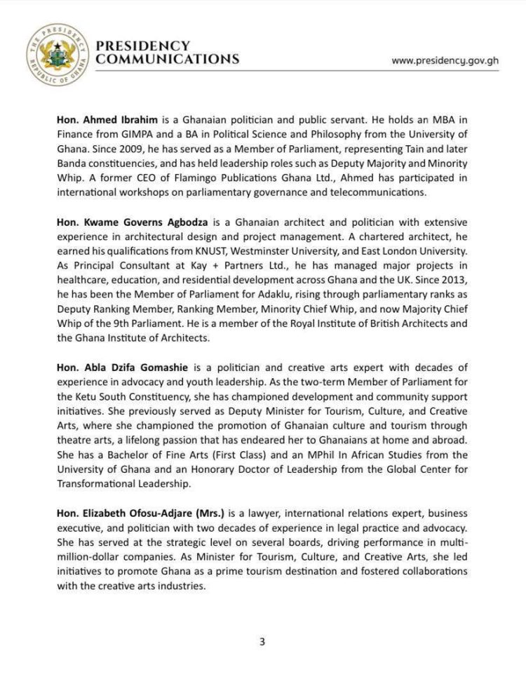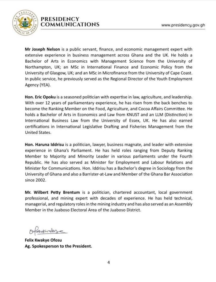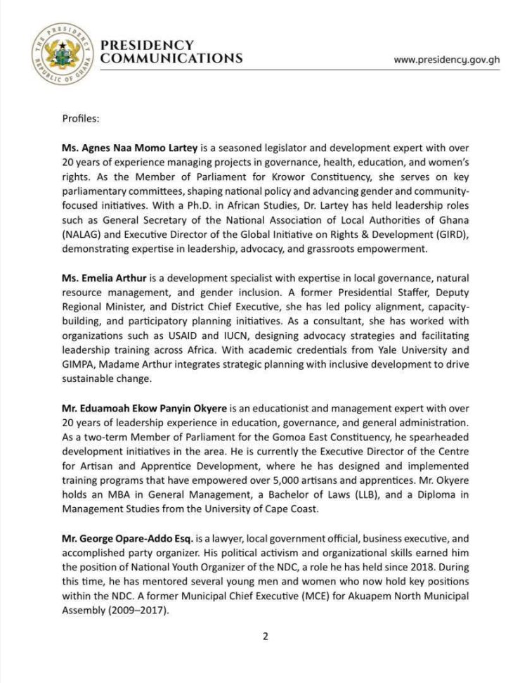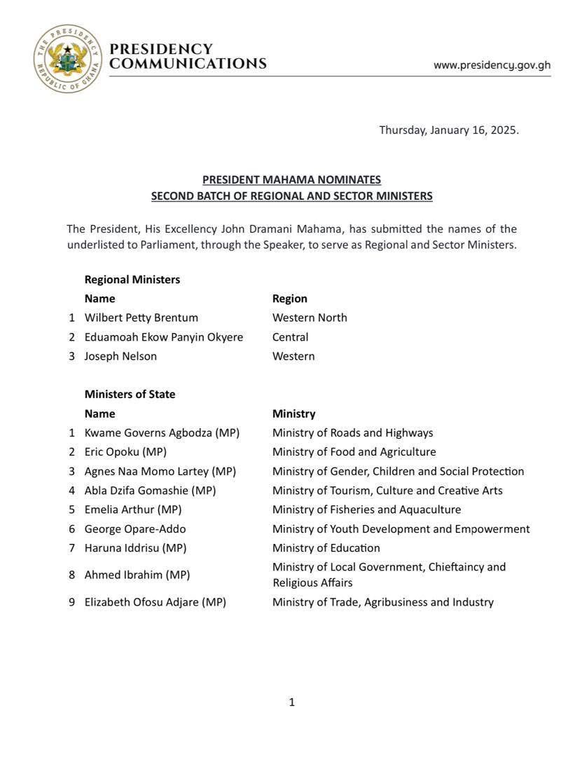 President John Dramani Mahama has announced a new slate of ministerial nominees as part of his vision for governance.